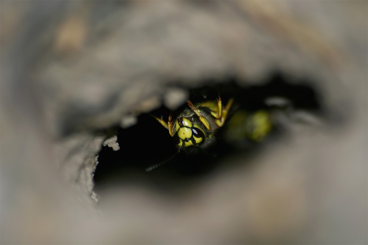 Wespennestwache Canon EOS 10D - Sigma 4-5,6 II Apo Macro Super 70-300 @300 mm - f5,6 - 1/60 s - Iso 400 - Freihand 5. August 2004, Saarbrücken-Malstatt (Bürgerpark) - Ein Naturdokument - nicht arrangiert oder manipuliert -