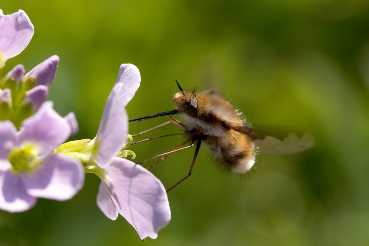 Grosser Wollschweber (Bombylius major) an Wiesenschaumkraut